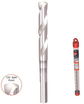 - 135° split point eradicates the need to pre-drill/centre punch. Prevents 'walking' and enables faster penetration.